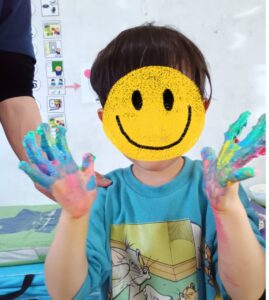 一方、乾くのなんて待ってられない!ダイナミックにやりたい!と両手を使って表現するお子さんも!